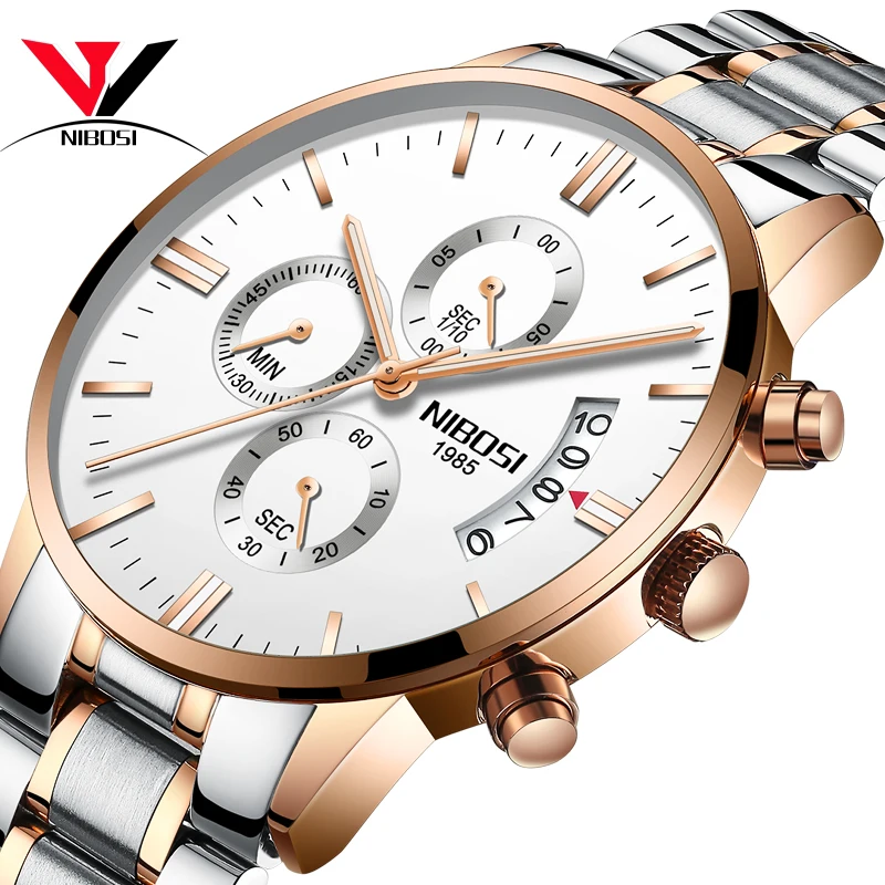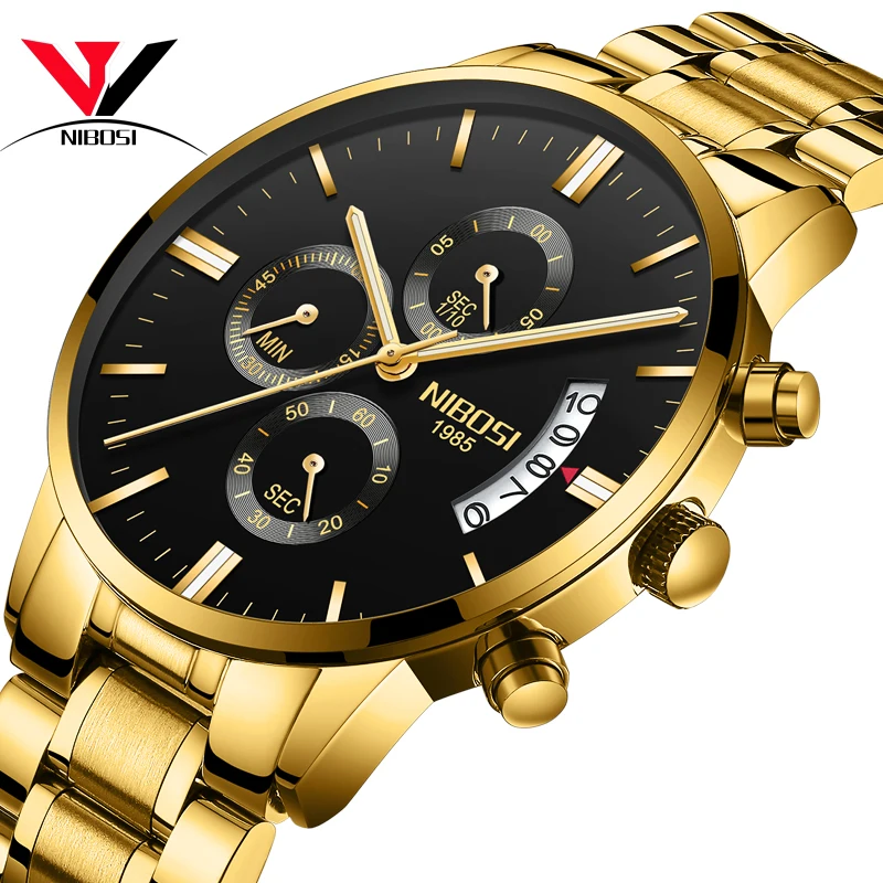 . Beste Kopen NIBOSI Relogio Masculino Horloge Mannen Goud En Zwart Heren Horloges Top Merk Luxe Sport Horloges 2018 Reloj Hombre Waterdicht Goedkoop.