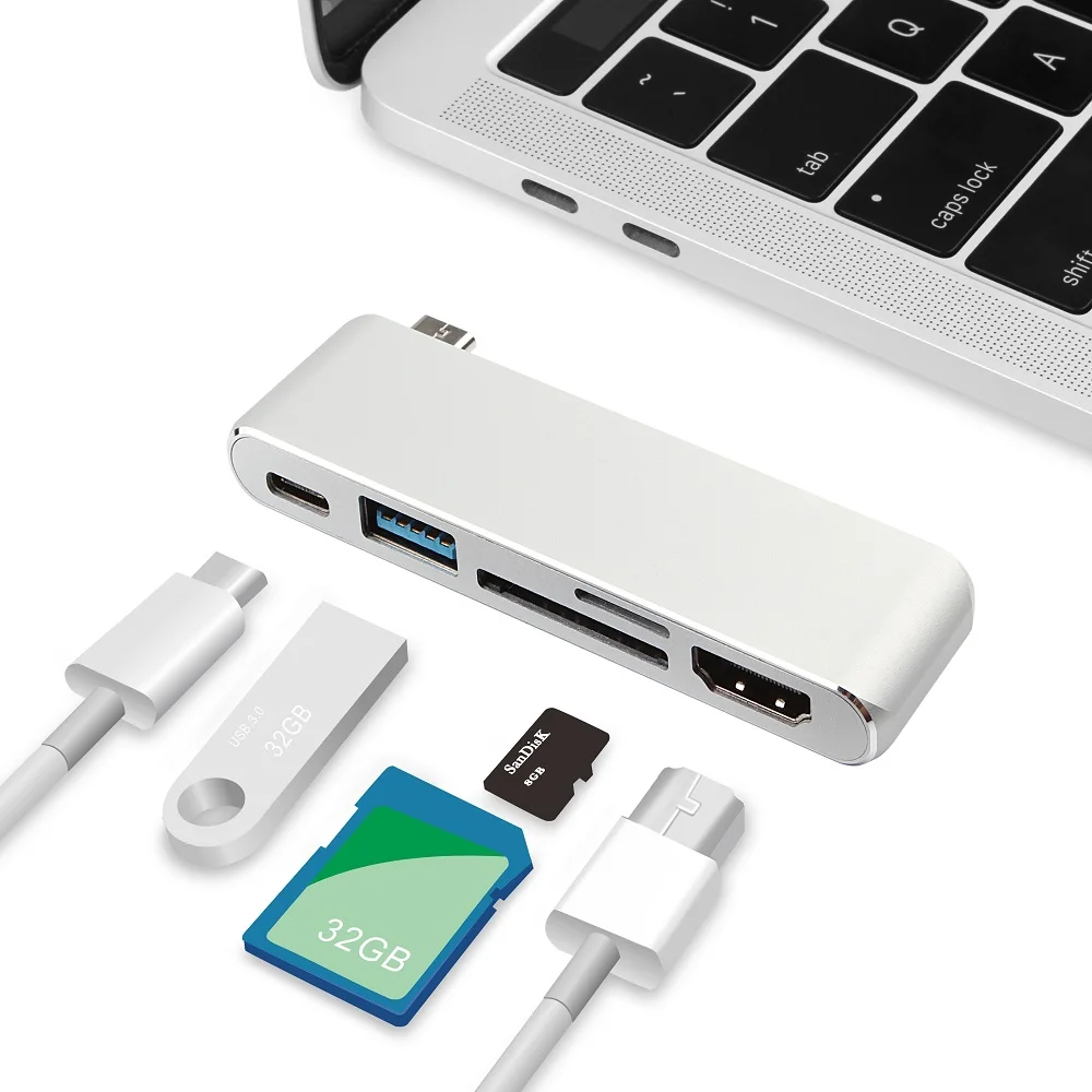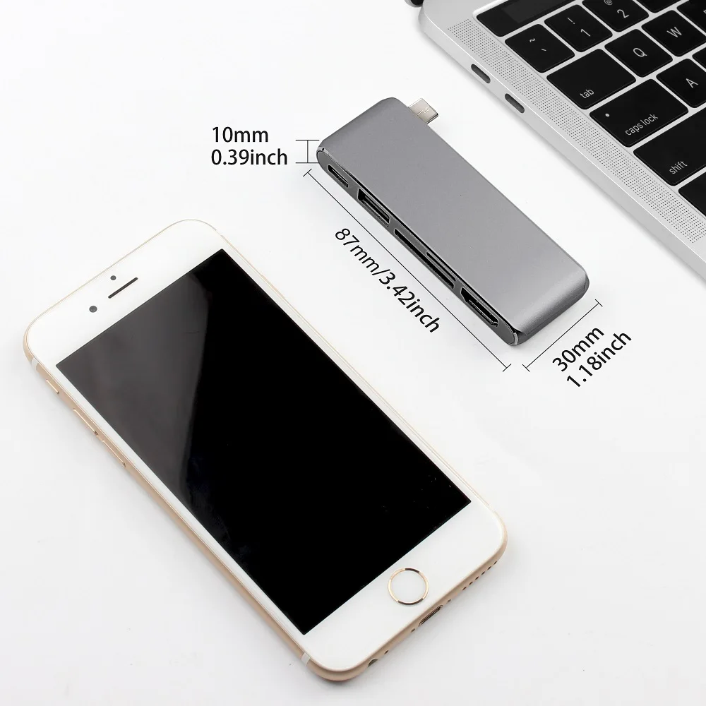 Beste Kopen 5 in 1 USB C Type C Hub HDMI voor Macbook Pro Air 2018 USB C Hub USB Splitter 3.0 Adapter TF Sd kaartlezer Type C Voor macbook 12 Goedkoop